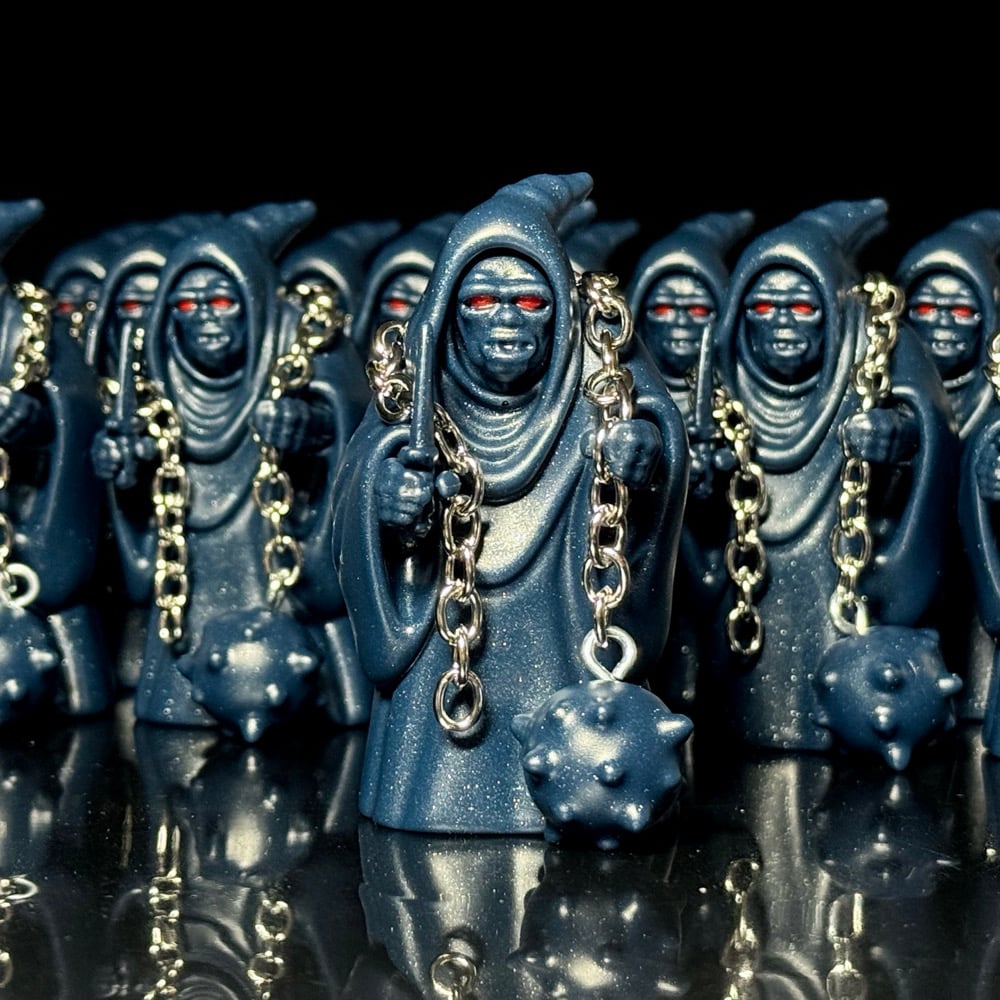 3 inches. Hand cast deep blue resin with silver chrome flake & red detail. Includes exclusive vending sticker.