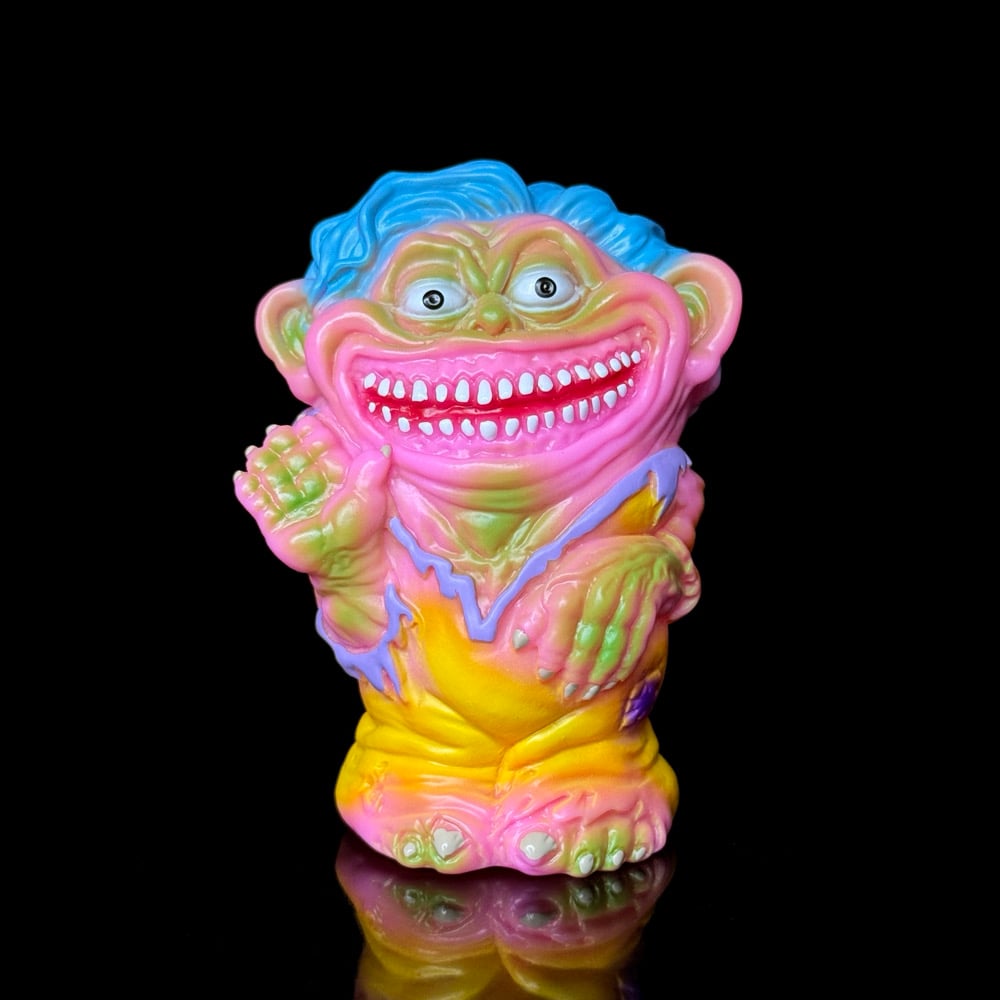 Hand painted on pink Japanese soft vinyl.